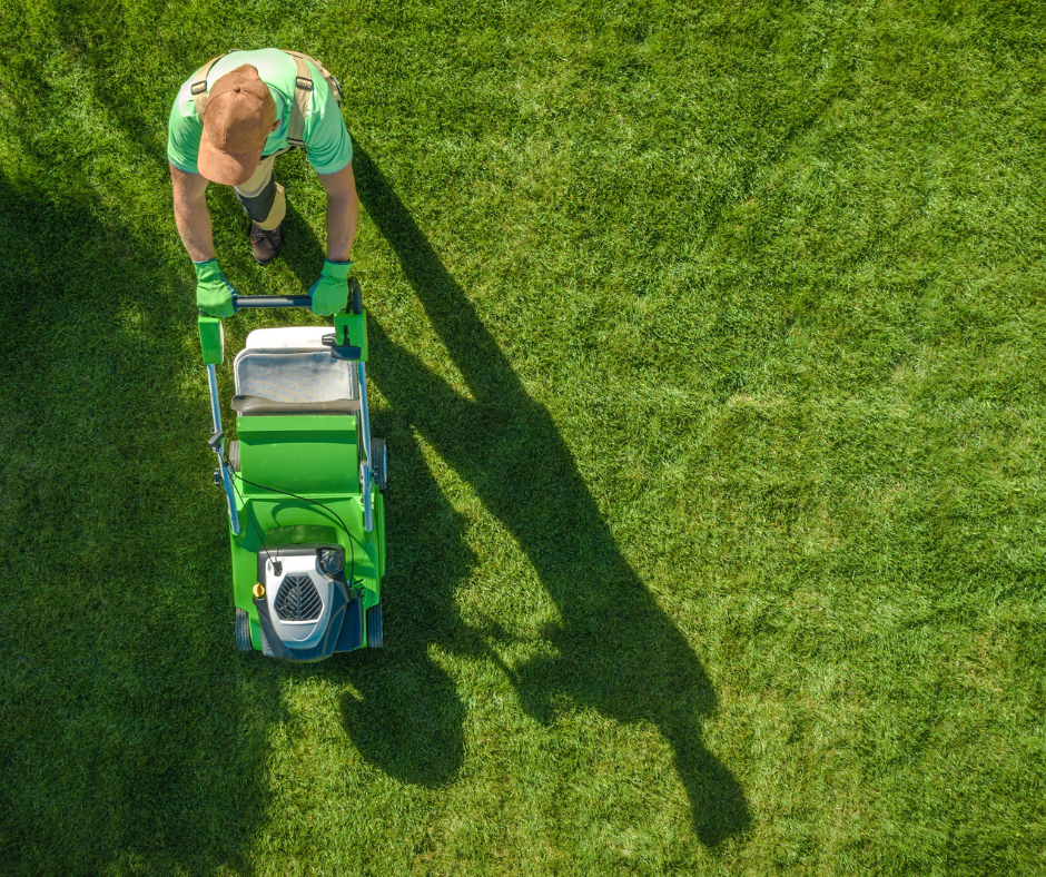 Lawn mowing to maintain a consistent and aesthetically pleasing grass height.